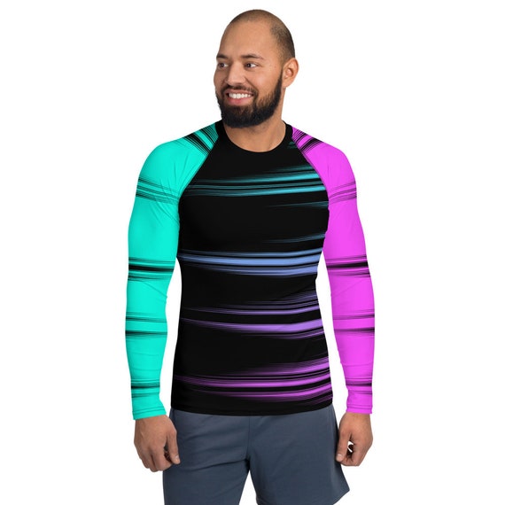 Men S Aqua Pink Pattern Rash Guard Etsy